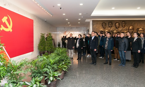 为贯彻落实党的十九大精神,深入推进全面从严治党,以坚定理想信念宗旨为根基,不断提高党的建设质量,12月29日中午,校领导楼巍、黄昌勇、胡敏、宫宝荣、张伟令、张佳春,带领党院办、组织部、宣传部和舞蹈学院有关党员同志,以及大型舞蹈诗《红》剧组主创人员,一同赴中国共产党第一次全国代表大会会址纪念馆(以下简称“一大会址”)参观学习,回顾党建历史,缅怀革命先辈事迹。