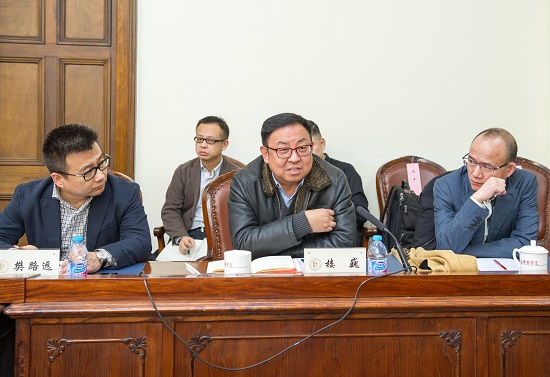 图为楼巍书记代表学校做工作汇报