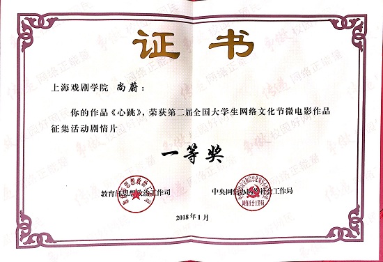 会上举行了在第二届全国大学生网络文化节、全国高校网络宣传优秀成果推选展示活动中(简称“一节一推选”)优秀作品颁奖典礼。我校在微电影征集活动中表现突出,电影电视学院方虹老师指导的学生尚蔚作品《心跳》荣获一等奖,侯咏、詹新、严�晔老师指导的学生王燕玲、赵安露、张好、厉方宇、逯畅作品《生日》荣获二等奖,并作为获奖高校代表上台领奖。其中一等奖作品《心跳》以展板形式进行了现场展示。