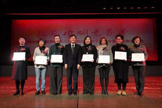 恰逢“国际妇女节”108周年之际,上海市教育系统纪念大会暨先进表彰大会于3月6日下午在黄浦区青少年科技活动中心举行。本次大会以“教苑巾帼竞芬芳”为主题,同时表彰了教育系统获得全国三八红旗手标兵、红旗集体、全国巾帼文明岗、巾帼建功标兵以及全国“最美家庭”和“海上最美家庭”;还有上海市2017年度巾帼创新奖、新秀奖、巾帼建功标兵、巾帼文明岗、“妇女之家”等先进集体和个人。