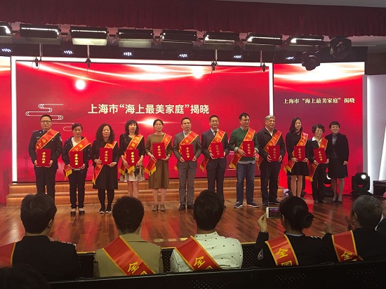 图为刘宁老师代表“海上最美家庭”接受表彰
