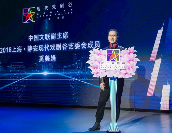 图为中国文联副主席、2018 上海·静安现代戏剧谷艺委会成员、我校校友奚美娟发言