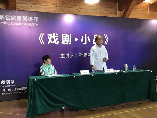 上海戏剧学院表演系名家系列讲座第五讲——孙祖平《戏剧·小品》,在表演系主任何雁的邀请和组织下,于2018年5月31日下午在我校图书馆四楼举行。表演系副主任肖英主持此次讲座活动。肖英老师首先对孙祖平教授亲临表演系名家讲座并给大家讲课指导表示感谢,更希望老师同学们能够认真把握好这次讲座机会,汲取理论经验,对表演艺术的学科研究和实践技能有所感悟和提升。
