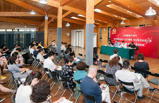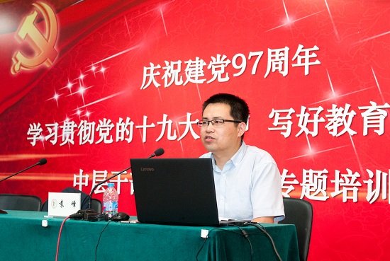 2018年6月28日,我校“庆祝建党97周年,学习贯彻党的十九大精神,写好教育奋进之笔”中层干部、党务干部专题培训班在图书馆4楼开班,全体中层干部和各基层党组织书记、副书记、支委参加,培训班由党委副书记、院长黄昌勇主持。首先,上海市党建文化研究中心袁峰研究员为全体干部带来专题讲座《日出东方:中国共产党创建与初心的确立》,带领大家再次回顾了建党的初心之旅。随后,党委书记楼巍同志讲话,对培训班提出进一步要求。一是提高思想认识,提升政治站位,在坚持正确办学方向、建设国内领先世界一流艺术类高校上要有更高要求;二是增强使命意识,狠抓落实,将党代会精神转化为抓好落实的项目书、路线图、时间表和责任人;三是坚持问题导向,切实担起责任,抓好整改落实。