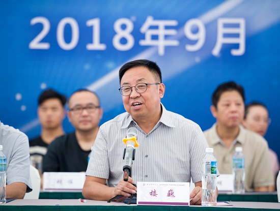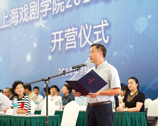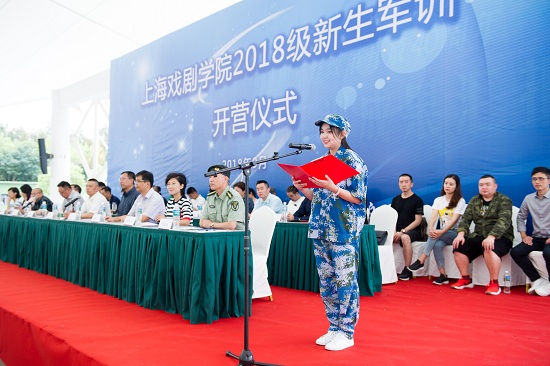 图为副院长刘庆宣读上海戏剧学院2018级新生军训的连队建制名单