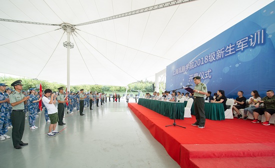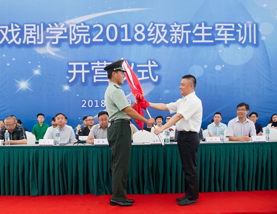 开营仪式在庄严的升国旗、奏唱国歌仪式中正式开始,副院长刘庆宣读了上海戏剧学院2018级新生军训的连队建制名单。全体新生在军训总教官的带领下面向国旗庄严宣誓,铿锵有力的青春誓言在军训基地上空回响。党委副书记、副院长张伟令向军训总教官授旗,接下来8天时间里,新生们将在教官团队带领下进行艰苦的军事训练。
