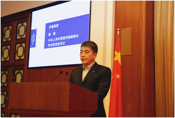 (图2 上海市委宣传部副部长、上海市社联党组书记燕爽致开幕词)