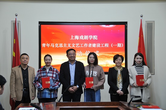 11月30日下午,学校举行“青年马克思主义文艺工作者建设工程”启动仪式。党委书记楼巍、党委副书记胡敏出席,党委副书记、副院长张伟令主持启动仪式。从全校各院系精心遴选出的20名优秀青年学生与导师现场“结对子”,成为建设工程的首批学员。著名表演艺术家牛�,全国教育名师、上海交通大学马克思主义学院教授施索华受聘担任校外导师。