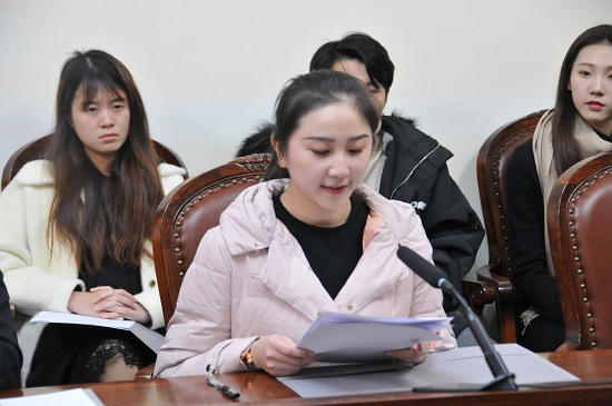 图为学生代表发言