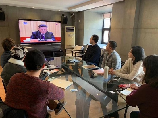 校领导班子认真学习并高度评价习近平总书记在庆祝改革开放四十周年大会上的重要讲话,认为习近平总书记用近一个半小时的时间,系统梳理了改革开放40年以来取得的基本经验和伟大成就,通报讲话体现了历史的高度、全局的高度、战略的高度,提出“将改革开放进行到底”的伟大号召,对于推进新时代改革开放再出发具有十分重要的指导意义。学校在建校70多年尤其是改革开放40年以来的办学实践中,同样形成了以创业精神、改革精神、家园精神为鲜明特征的上戏精神,与伟大改革开放精神一脉相承。我们将以总书记重要讲话精神为指引,坚持将改革开放进行到底,继续全面深化教育综合改革,不断加强国际交流与合作,坚定不移走“平台型大学”建设发展道路,朝着加快将学校建设成为国内领先、世界一流高等艺术院校的目标不断努力奋斗。