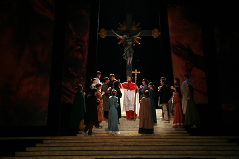 图为上海戏剧学院在国家大剧院演出的《牛虻》剧照。
