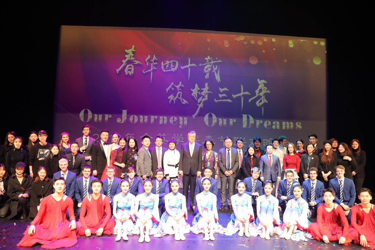1月28日晚,我校党委书记楼巍应邀观看了由全英学联主办、上海戏剧学院协办的“春华四十载,筑梦三十年”春晚。中外1500余观众观看了此次晚会。晚会在我校精心打造的大型舞蹈诗《红》片段中拉开帷幕,我校舞蹈学院学生演出的《秀色》等节目受到观众热烈欢迎。