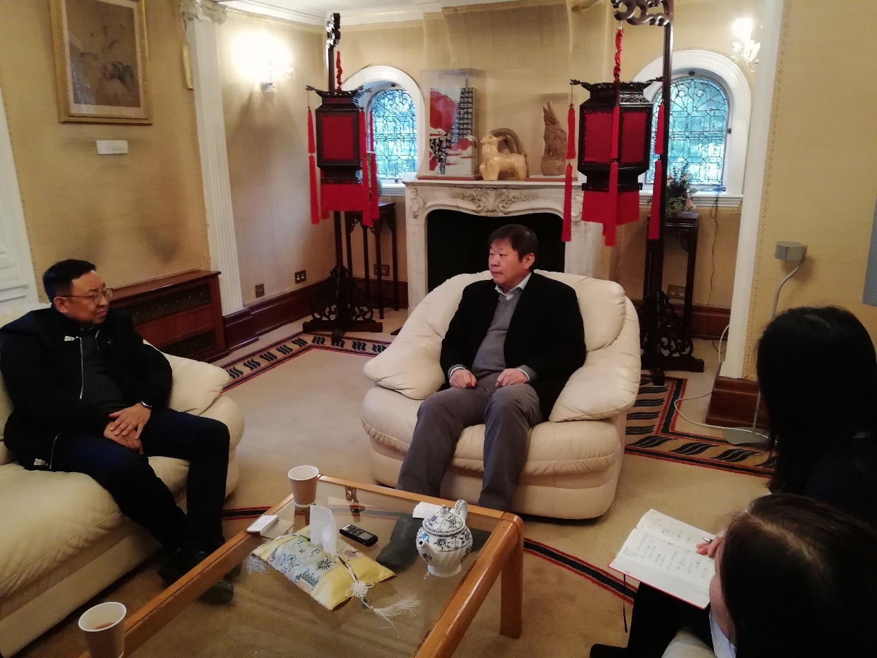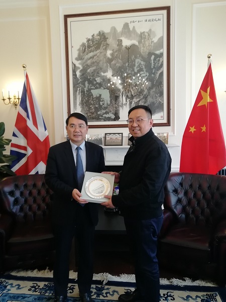 (校党委书记楼巍与中国驻英国大使馆文化处公使衔参赞项晓炜)