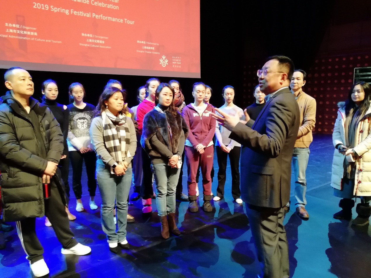2月2日,楼巍书记一行前往安特卫普慰问学校参加“欢乐中国行”的师生演职人员。演出团团长刘春友汇报了演出准备情况。楼巍书记表示,此次演出团代表上戏走出国门,值得骄傲。希望大家高度重视,展现好上戏学生的良好风貌。