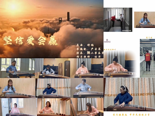 由戏曲学院戏曲音乐专业伍洋老师带领古筝专业的同学们组建的“無二筝乐队”,积极参与抗疫活动,将《坚信爱会赢》这首抗击疫情主题歌进行原创编配为古筝曲,制作了相关视频和公众号推文,为抗疫尽一份微绵之力。本次伍洋老师带领指导学生创新编配的古筝曲正是戏曲学院开展课程思政建设以来,结合当下课程思政理念配合教学的进一步外延,是一次较为成功的课上与课下师生互动的特色教学案例,发挥了教师线上教学和学生课后反馈的优越性。在疫情期间,戏曲学院还有多位青年教师正在以自己的教学特色,结合抗疫内容与精神开展“戏曲抗疫”的相关教学,为他们点赞。