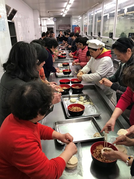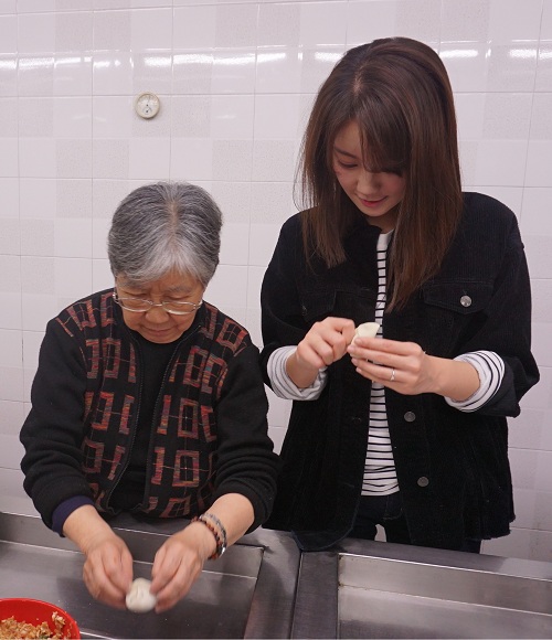 本次活动旨在展现我校离退休女教工心灵手巧的美丽风采,并通过与留学生的交流增进国际友谊,传播中华文明,弘扬中华民族勤劳的传统美德及中华文化的无穷魅力。活动现场气氛热烈,欢声笑语充溢着整个大厅。离退休女教工双手上下翻转,不一会儿一只只精美的饺子、一个个可爱的包子便铺满了整个餐桌。留学生们认认真真、小心翼翼,虽然手法中透出了笨拙,但神情中透出的是对中华美食文化满满的赞叹。