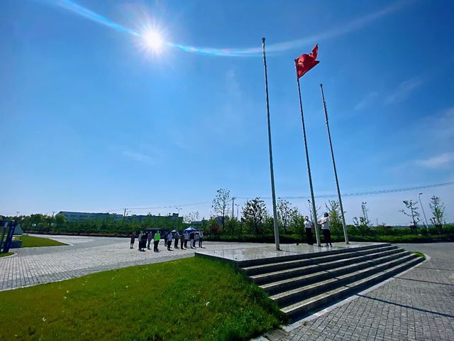 上午九时整,伴随着庄严的国歌,升旗手扬起国旗、摇起手柄,22位师生代表心怀崇敬、目光坚定,注视国旗冉冉升起。