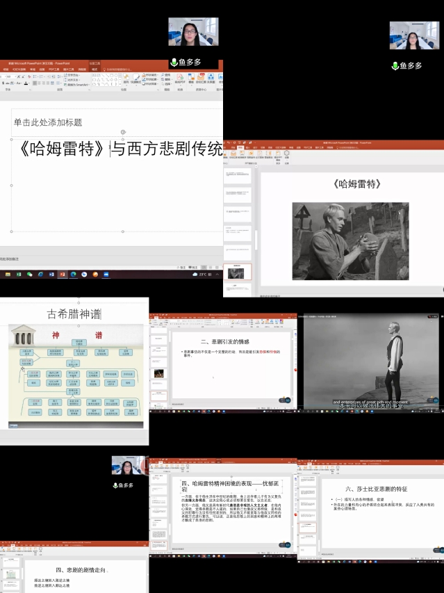 5月2日,朱夏君老师为大家带来了“《哈姆雷特》与西方悲剧传统”的云讲座,朱老师从希腊神话作为导语,从西方经典中的几部古希腊悲剧,到莎士比亚的代表作为同学们进行了导赏,并为同学们播放了相关视频。朱老师在讲座中谈到,我院以往各专业排演过一些西方戏剧,不乏莎士比亚的作品,希望在讲座之后,能有更多的同学,对莎剧人物有更深的把握和理解,从而表演好剧中人物。以往同学们沉浸在“四功五法”的世界中,而正是本次讲座,朱老师带领同学们走进了另一个世界,有了不一样的感受。希望同学们在讲座之后,能够多学多看多拓宽自身视野,成为具备国际视野的新时代戏曲人。