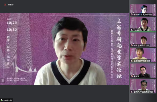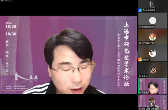 10月29日至10月30日,由上海市教育委员会主办、上海戏剧学院研究生部承办的上海市研究生学术论坛暨第十五届长三角戏剧影视研究生学术论坛在我校成功举办。受疫情影响,本次论坛全程采用线上直播的方式进行,虽然无法近距离、面对面地交流,但论坛气氛热烈依旧,来自全国各地的研究生们齐聚线上直播间,在学术交流的海洋中自由徜徉,碰撞出了新的火花。