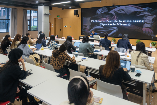 校内主讲李旻原老师则以Antonin Artaud《剧场及其复象》中关于“剧场中的语言”的论述作为引子,围绕“Mise en scène”(场面调度)展开分享,并结合自身创作实践《野兽派太太》作品内部的跨媒介性做了具体分析。