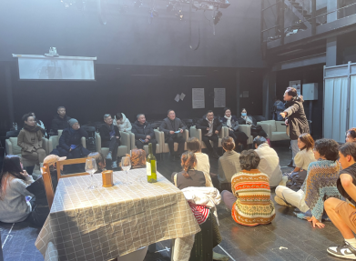 演出后,同学们还总结和此次跨专业合作的五方面目的和创新点,具体包括:1、为导演系和舞美系的学生日后在专业及创作上合作愈加融洽进行一次练手试验,也为他们即将涉足的大学生创新项目搭建桥梁。2、让导演系的学生进入新媒体智能灯光实验室这一新奇而陌生的环境做戏剧的探索,增强实验和实践能力。3、积极响应党的二十大提出的劳动教育和提升动手能力,让学生在吊杆和各种灯具器材中加强对灯光操作的了解。4、《地质师》片段与课程思政的结合,学生们学习了新中国建设阶段的时代背景,感悟先辈将青春挥洒在祖国边疆开发石油的大庆精神。5、进行实践的同时不忘理论基础的重要性,学生大量翻阅专业建设方面的文章,为学科融合的尝试保驾护航。