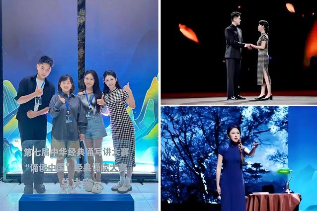 此外,23级白亦端与24级言姝瑾跻身哔哩哔哩新国辩高校组八强,白亦端入选“海尔新生浪计划”全国三十强,言姝瑾获“党史国史·我来学我来讲”演讲比赛青年组一等奖。同学们还广泛参与凤凰卫视“发现新主播”、“海峡两岸”动漫配音大赛、“观安杯”主持人大赛、“新声”大学生语言文化艺术节等赛事,展现出系统而扎实的语言艺术能力。