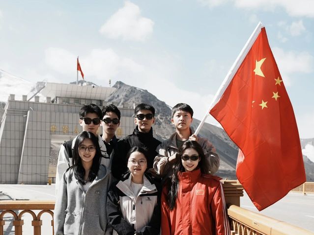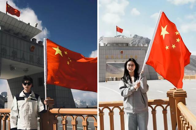 2025年9月3日,在纪念中国人民抗日战争暨世界反法西斯战争胜利80周年阅兵式前夕,上海戏剧学院"声"耕行动推普实践团在新疆推广国家通用语言期间,专程来到我国海拔5100米的红其拉甫国门参观学习,当亲眼目睹五星红旗在边境线上迎风飘扬,他们深切感受到了伟大的爱国主义精神和国家尊严。