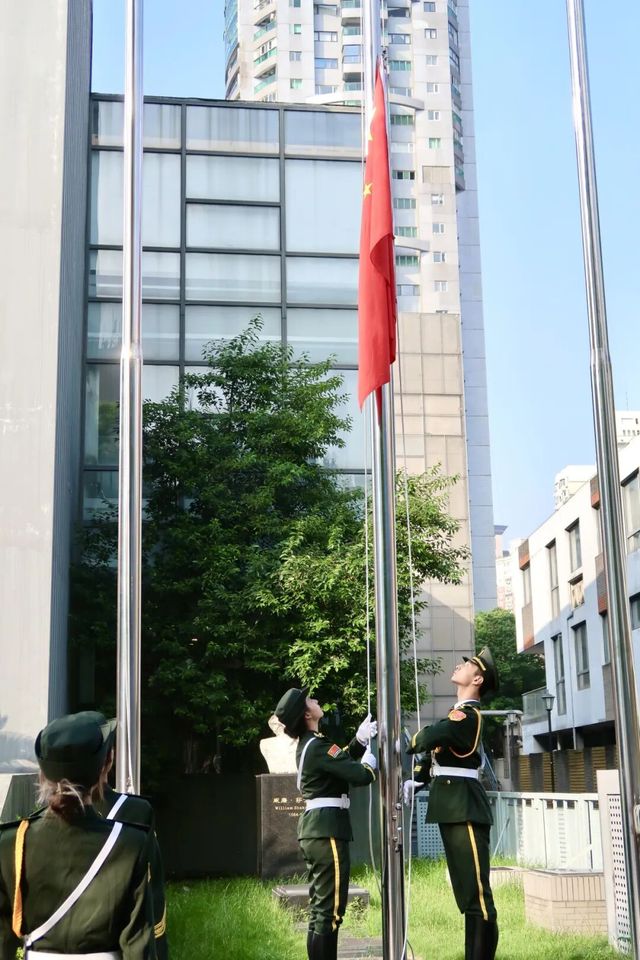 上海戏剧学院党委书记谢巍,党委副书记、副院长徐咏,党委常委、副院长郭恺,相关职能部门、各院系师生分别在华山路、昌林路两校区参加国庆升旗仪式。