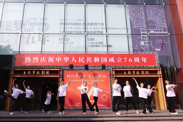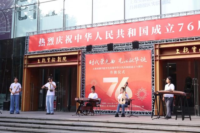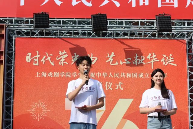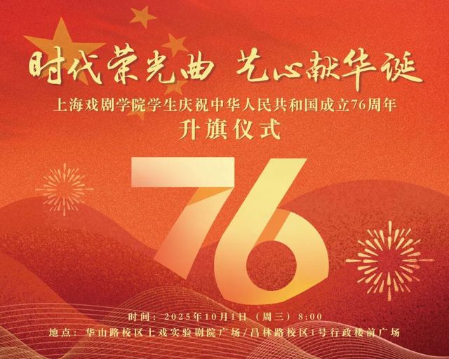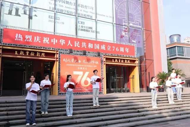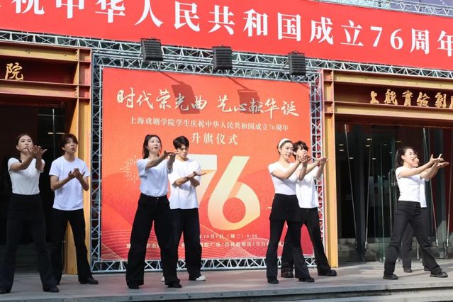 10月1日上午八时,上海戏剧学院师生齐聚一堂,共同参与“时代荣光曲 艺心献华诞”——上海戏剧学院学生庆祝中华人民共和国成立76周年升旗仪式,共庆共和国华诞。