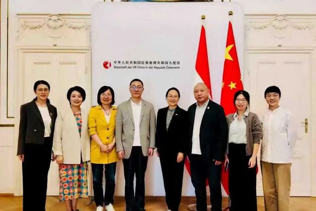 同时,代表团还访问了维也纳艺术家协会和古金博物馆,与艺术家协会主席Tanja Prusnik、博物馆艺术总监Nina Ansperger等就人工智能与艺术疗愈项目以及青年艺术家联合创作等事宜进行了交流。此外,代表团还与奥地利联邦艺术、文化、媒体和体育部相关负责人,就青年艺术人才培养、高水平师资互访、驻地艺术家项目等工作的开展与推进达成一系列共识。