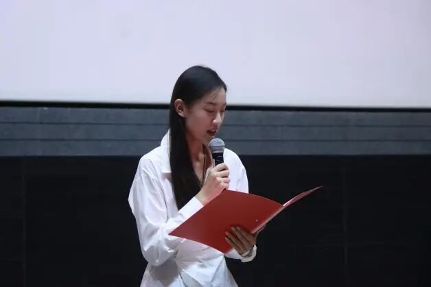 上海戏剧学院党委常委、副书记、副院长徐咏向2025级新生表示热烈欢迎与祝贺。她指出,在这个值得纪念的年份加入上戏,是一种缘分,更意味着一种责任。她对同学们提出三点期望:学会跨出去,在多门类艺术平台中汲取灵感;注重修炼内功,锤炼审美的眼光与人文的关怀;早一点思考未来,带着目标去准备。最后,她深情寄语:“电影是光与影的艺术,而你们正是上戏崭新的那束光。愿你们佩戴着这枚校徽,在未来的四年中勇敢追光,温暖发光,最终成为那束独一无二的光。”