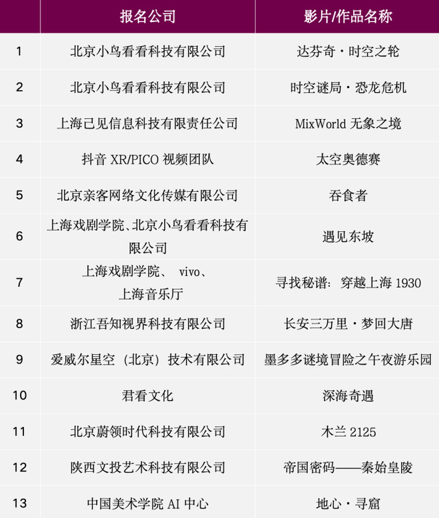 本届初评会共收录24部XR作品,涵盖历史人文、科幻探险、国风美学等多种题材,展现中国创作团队在沉浸式内容创作领域的前沿探索。这些作品不仅代表了国内XR作品创作领域的高端水准,也为行业提供最先进的技术参考与内容样本。最终,共有13部作品入围金鸡XR影展终评会。