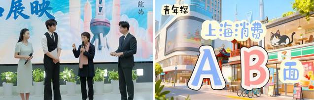 活动现场,上戏学子带来了三部原创财经主题短片——《戏剧永不眠》《上海消费AB面》《笑声经济》,从Z世代视角出发,以实地调研为基底,融入戏剧化叙事、社会观察与纪实美学,生动诠释消费趋势、文化经济与城市活力。作品打破财经内容传统表达框架,体现出艺术手法在专业传播中的赋能价值,也彰显了上戏在跨学科人才培养方面的积极探索。