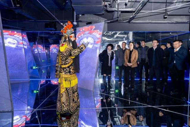 启用仪式后,嘉宾与师生们饶有兴致地参观了各层展区,借助多媒体互动技术,走进历史记忆,感受学校变迁,并在智能机器人助手“尚小熙”的导赏下,参观了学校大学生创新创业孵化基地、硅基探索实验班、思政智能空间,同时观看了融合舞蹈、古诗、木偶的人机互动表演,共同展望上戏新时代的文化使命与发展图景。今年秋天入学的全国首位机器人博士“学霸01”主演的人机共演戏曲《霸王别机》片段,也精彩亮相于其中。