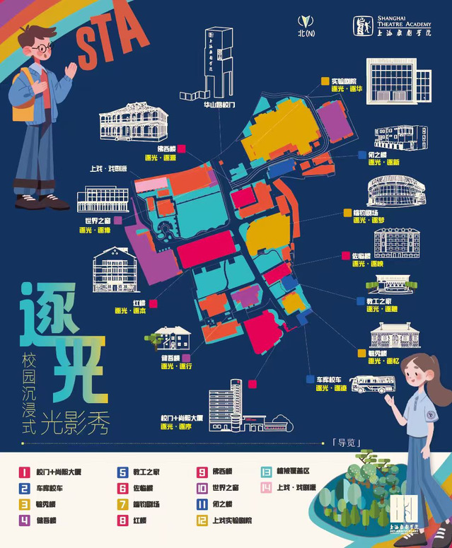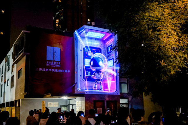 上海戏剧学院自1945年建校,已走过八十年历程。华山路校区内有多处历史建筑不仅见证了学校的发展,更承载了无数艺术工作者的梦想与汗水,这是学校发展历程的印记。此次光影秀不仅致敬建校80周年,更是一次对“艺术与科技融合”“校园空间重塑”的公共艺术实践,展现了学校在数字时代对戏剧教育外延的探索。