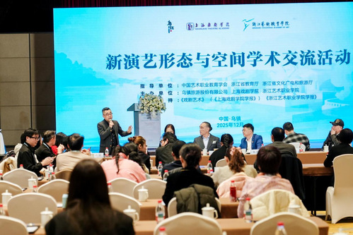 12月6日,新演艺行业产教融合共同体成立大会暨新演艺形态与空间学术交流活动在乌镇隆重举行。作为共同体牵头高水平高等院校与大会联合主办单位,上海戏剧学院携手乌镇旅游股份有限公司、浙江艺术职业学院一同为新演艺行业搭建起产教深度融合的创新合作平台。本次活动还得到中国艺术职业教育学会、浙江省教育厅、浙江省文化广电和旅游厅指导支持,来自全国演艺行业院校、企业、科研机构及行业协会的百余位嘉宾齐聚水乡乌镇,共商产教融合大计,共话行业创新发展。