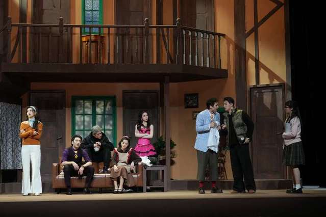 每一件道具都是一个“机关”。那扇永远关不上的门、消失的香辣小黄鱼罐头、那些总在错误时机出现的道具……这些并非失误,而是同学们共同打磨的、精确到秒的喜剧触发器。它们的“失灵”,是演出“生效”的关键。舞台中央那座巧妙的双层旋转布景。第一幕是凌乱温馨的乡间别墅客厅;第二幕,它将180度翻转,将整个后台的杂乱、秘密与匆忙毫无保留地“解剖”;第三幕再次回转,已是演出尾声的“车祸现场”。