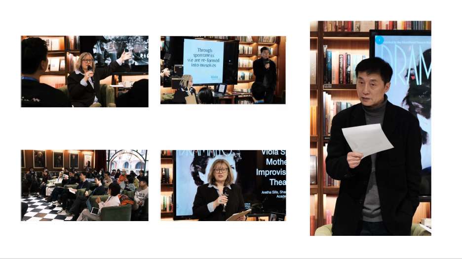 1月20日,国际戏剧大师表演方法项目负责人何雁教授介绍了本次大师班的整体规划与授课专家。阿蕾莎老师随后展开了关于斯波林方法的学术讲座,分享她对这一体系的深入理解,并表达了来到上海的喜悦。