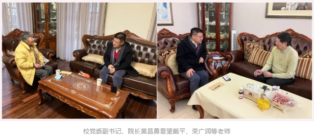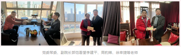 在万家团圆的新春佳节,上海戏剧学院校领导分别看望了学校退休的老领导、老专家、老教授,部分生病住院、生活困难的老党员老同志,亲切慰问春节期间在各校区坚守岗位的一线工作人员以及留校过年的学生,代表学校向大家致以诚挚的新春祝福和节日问候。
