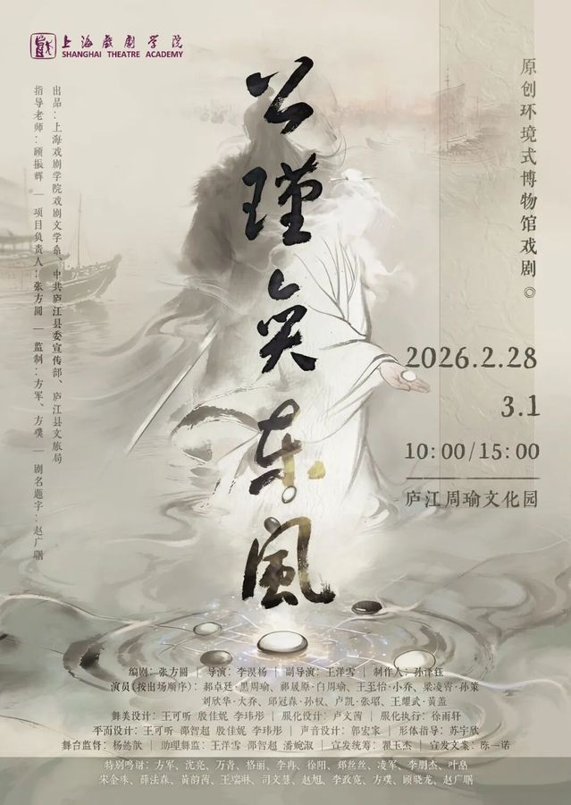 丙午马年元宵节前夕,春寒料峭的安徽省庐江县迎来了一场别具一格的文旅演出。由上海戏剧学院、中共庐江县委宣传部、庐江县文旅局联合制作的原创环境式博物馆戏剧《公瑾弈东风》,在位于庐江县的周瑜文化园内成功上演。